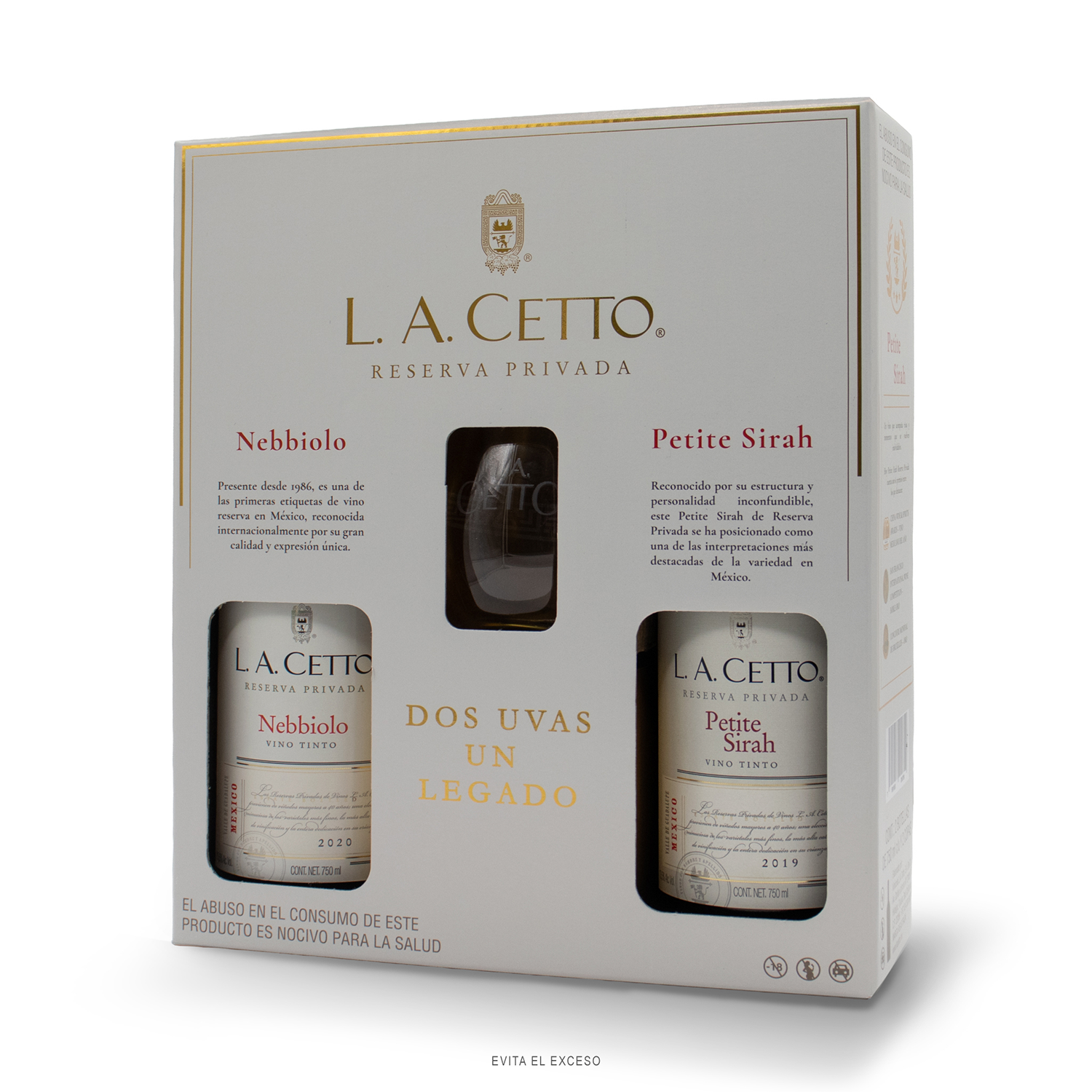 Paquete L.A. Cetto Reserva Privada Nebbiolo & Petite Sirah Copas ‘Stemless’